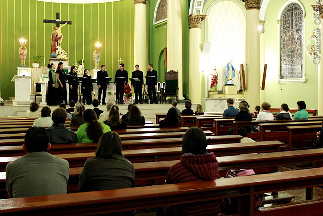2º - O local: Um ambiente que possui em sua principal característica a altura da construção (pé direito), o que torna as vocalizações e sonoridades algo fora do comum. A decoração e a arquitetura que se apresenta estão historicamente ligadas ao tipo de música executada. E, por fim, a utilização de um local que quase não é utilizado pelo povo, exceto durante as liturgias.