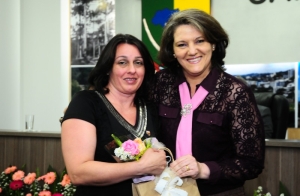 Glaci Pereira e a professora Édina Cristina Bragagnolo, do Colégio de Aplicação da UNIARP