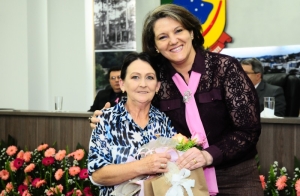 Glaci Pereira e a professora Eunice Alves de Oliveira, da Escola Pierina Santin Perret