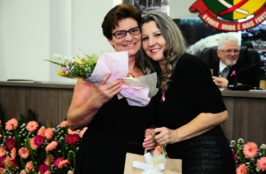 Glaci Pereira e a professora Édina Maria Tortelli, do Colégio Bom Jesus Aurora