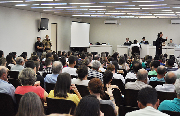 O júri popular de Marli Aparecida Teles de Souza e do filho Ulisses Souza de Oliveira segue com o Tribunal do Júri lotado. A sessão teve um recesso para o almoço e retornou os trabalhos por volta das 15h, com a argumentação da defesa.