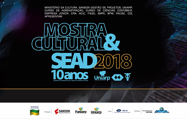 A 1ª Mostra Cultural e o SEAD 2018 estão com os ingressos esgotados. Os eventos acontecem de 19 a 21 de setembro no Teatro da UNIARP. O SEAD é um evento referência na região em função do alto nível dos palestrantes e atrações culturais. Tem a participação de acadêmicos, professores, colaboradores de empresas e líderes empresariais.