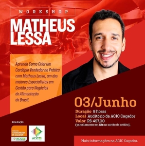 Definir um cardápio vendedor deve ser o objetivo de todo gestor de restaurantes e de negócios gastronômicos. Este é o assunto do workshop ministrado por Matheus Lessa, que acontecerá em Caçador dia 03 de junho, uma promoção do Núcleo de Gastronomia da ACIC. O evento inicia às 8h no Auditório da ACIC. Investimento: R$ 497,00 (com parcelamento no cartão de crédito).