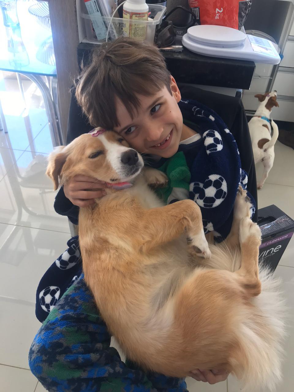 A amarelinha, de porte médio, atende pelo nome de Mel. A pequena, branca, chama-se Nalu. Elas são de duas crianças, uma de 8 e outra de 4 anos.