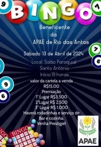 das Antas, realiza neste sábado, 13 de abril, o seu Bingo Beneficente, cujo