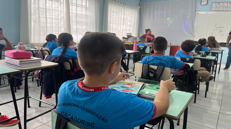 municipal de ensino de Caçador, nesta quinta-feira, 6. Os professores e