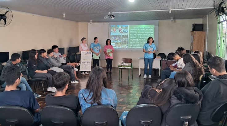 educativa com os alunos do 9º ano da Escola Dante Mosconi, em Caçador. A