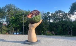 monumento em homenagem à espécie-símbolo da região: a escultura de uma mão
