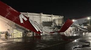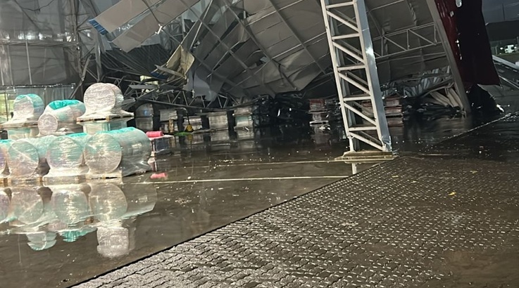Santa Lúcia. A força dos ventos arrancou parte do telhado na área dos depósitos