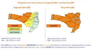 Sul irá trazer uma virada no tempo em Santa Catarina. O dia começa com chuva na