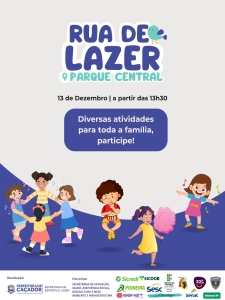 Lazer, promove neste sábado, dia 13, uma Rua de Lazer, no Parque Central José