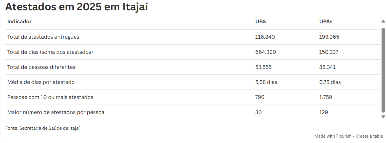 revelam a quantidade de atestados médicos emitidos na cidade em 2025. Uma única