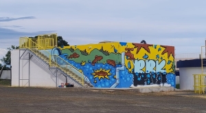painel que ficará marcado na história do saneamento de Caçador. A pintura foi
