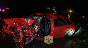 resgate veicular encontraram um VW Gol com considerável dano estrutural na