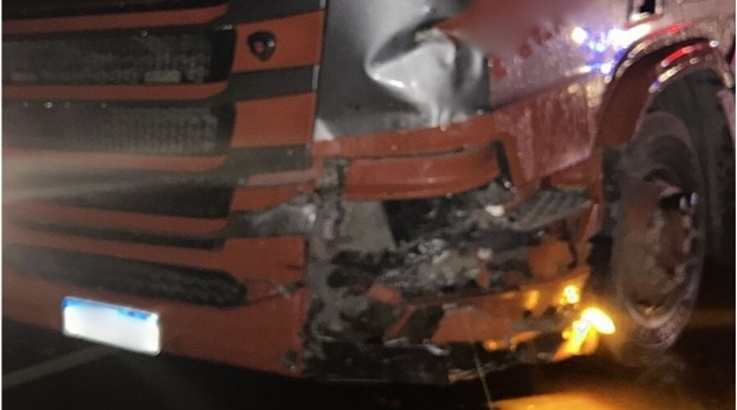 região frontal, envolvido em uma colisão com uma carreta Scania. Uma árvore