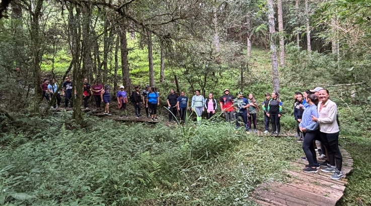 aventureiros exploraram uma nova trilha ecológica no Horto Municipal de