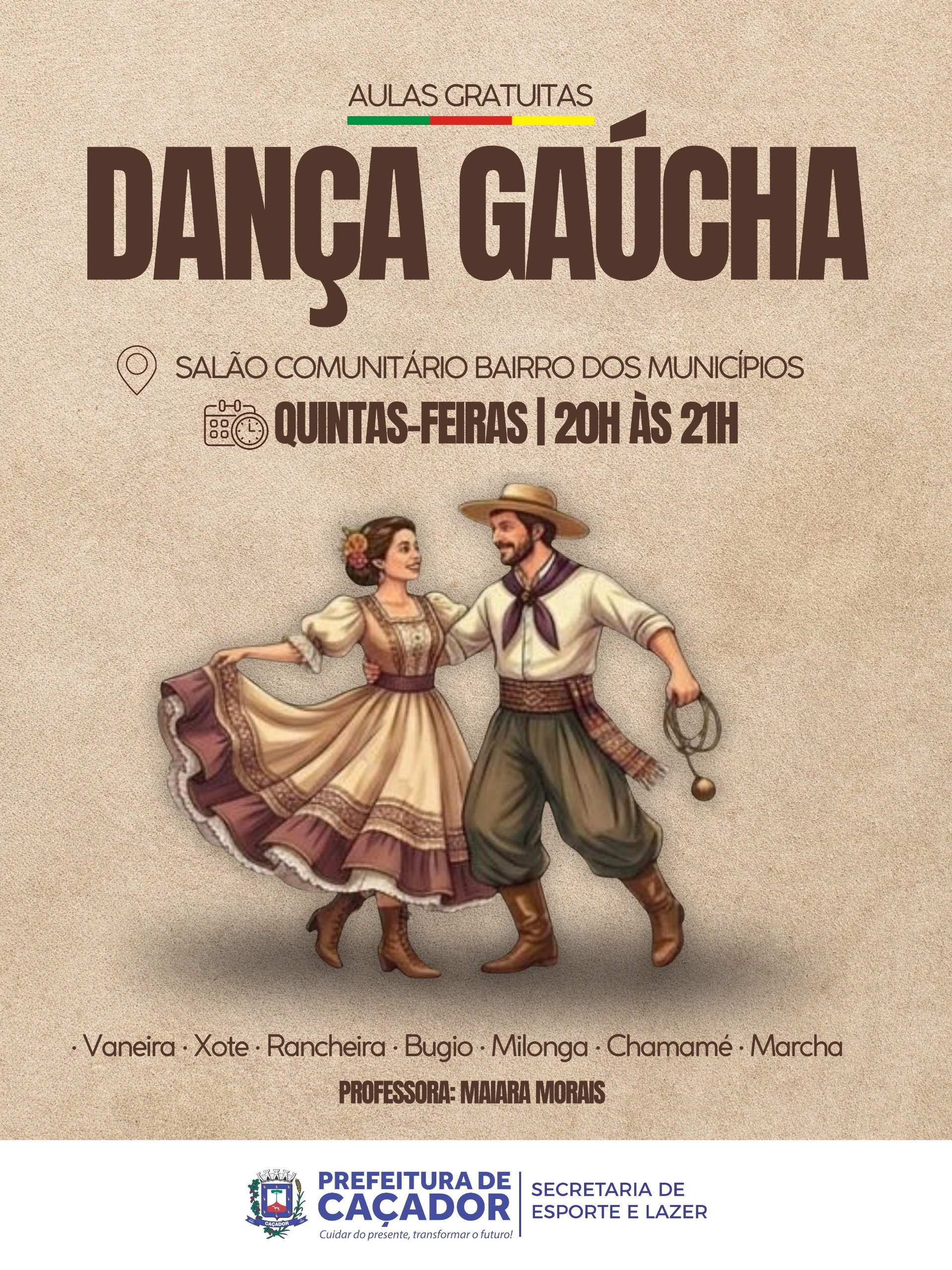Lazer, está ofertando aulas gratuitas de dança gaúcha.