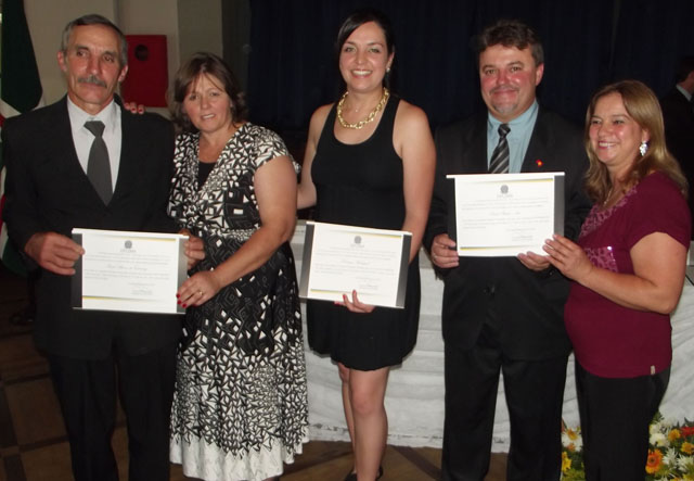 Com as esposas, Cecilia e Sônia, e a vereadora mais votada de Matos Costa, Danuza Rodrigues(PMDB), ao centro.