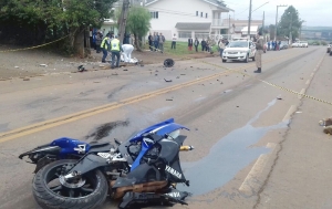 A moto ficou destruída e o condutor teve morte instantânea. Corpo de Bombeiros, Policia Militar e Polícia Civil atendem à ocorrência. A via foi isolada até a chegada do Instituto Médico Legal (IML).