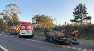 domingo, 5, por volta das 6h, um acidente de trânsito do tipo capotamento na