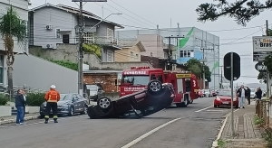 colidiu contra outro automóvel que estava estacionado e acabou capotando em