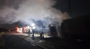6, para atender a um incêndio em veículo de carga na Rodovia BR-153, quilômetro
