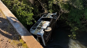 escolar, que caiu no Rio Correntes. O veículo, uma Kombi, transportava nove