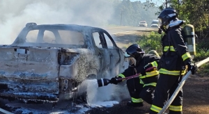 tarde desta terça-feira, 21, a um incêndio em veículo na rodovia SC-350, nas