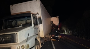 dois caminhões na SC-350, nas proximidades do km 30, em Caçador, na madrugada