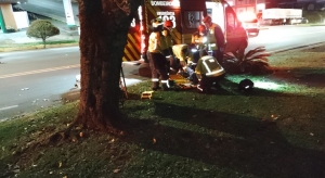 o motociclista foi conduzido ao Hospital de Fraiburgo para avaliação médica. O