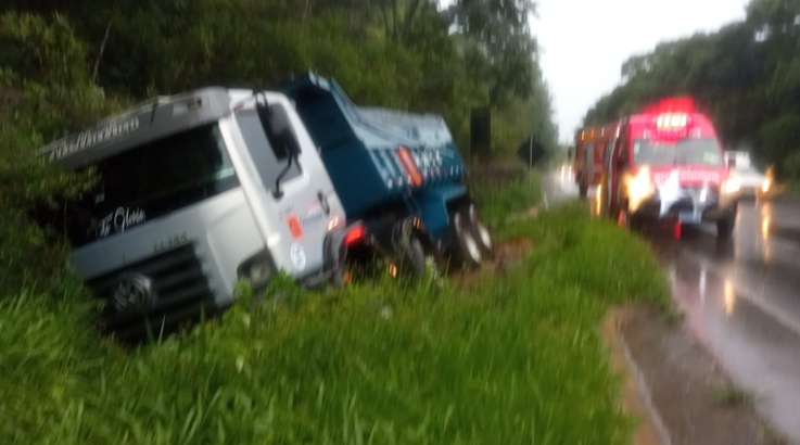 8, por volta de 15h30, uma ocorrência de saída de pista envolvendo um caminhão,