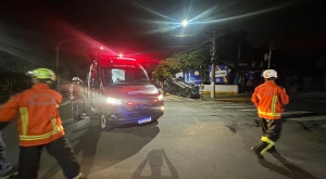 acidente na madrugada deste domingo, 14, no centro de Caçador. A colisão