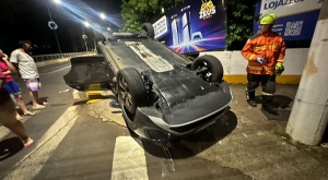 tempo. O T-Cross, que descia pela avenida Barão do Rio Branco, capota e vai