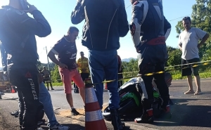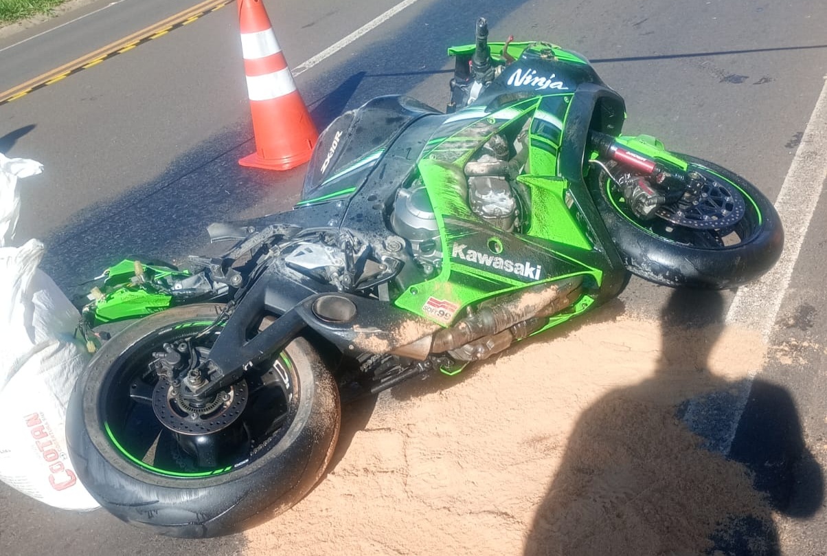 motocicleta Kawasak Ninja quando perdeu o controle do veículo em uma curva,