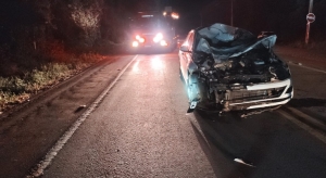 branca, ocupado por um masculino e uma feminina, colidiu frontalmente com um