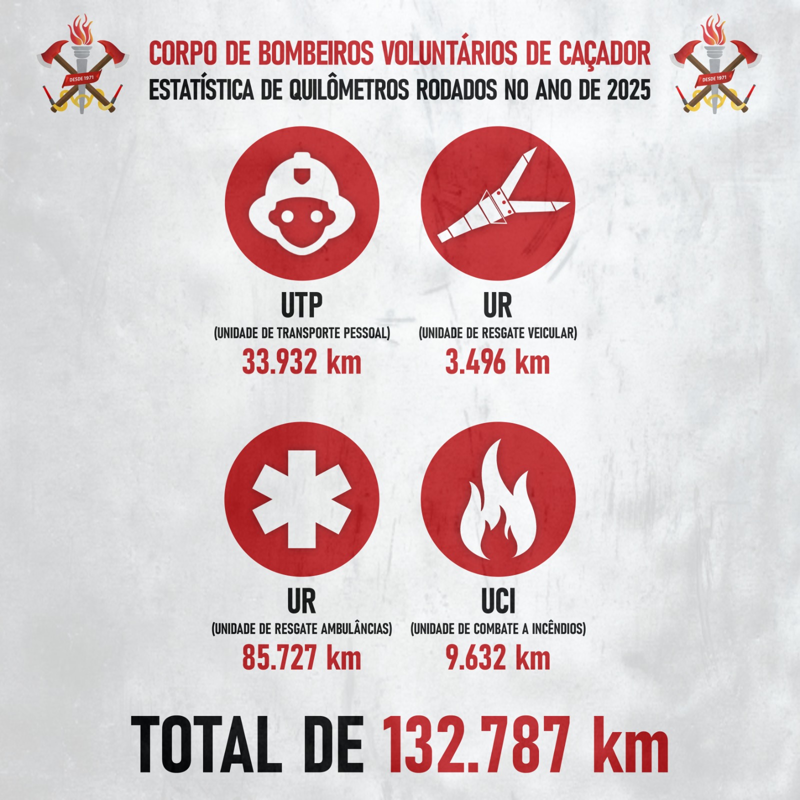 Já em relação a rodagem, as viaturas da corporação percorreram