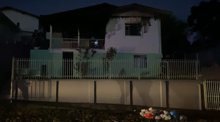 Uma residência mista foi parcialmente consumida pelo fogo no