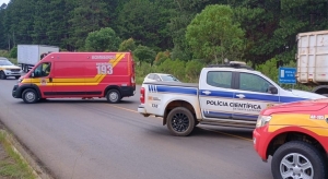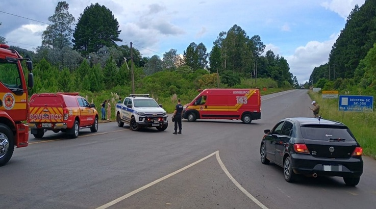 trevo de acesso ao município de Curitibanos, nesta sexta-feira, 9, por volta de