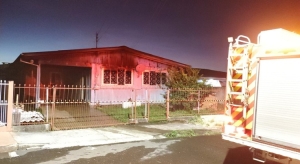 de um incêndio em duas edificações de madeira: uma residência frontal, que
