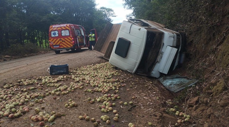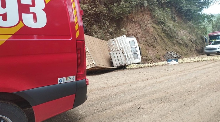 o caminhão contra um barranco, o que acabou provocando o tombamento do veículo