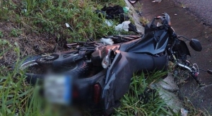 O outro veículo envolvido foi uma motocicleta de cor preta,