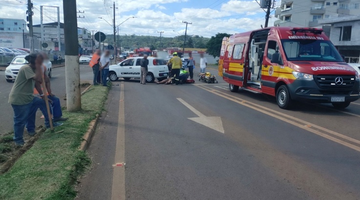 automóvel e motocicleta, registrada no centro da cidade, nas proximidades de um