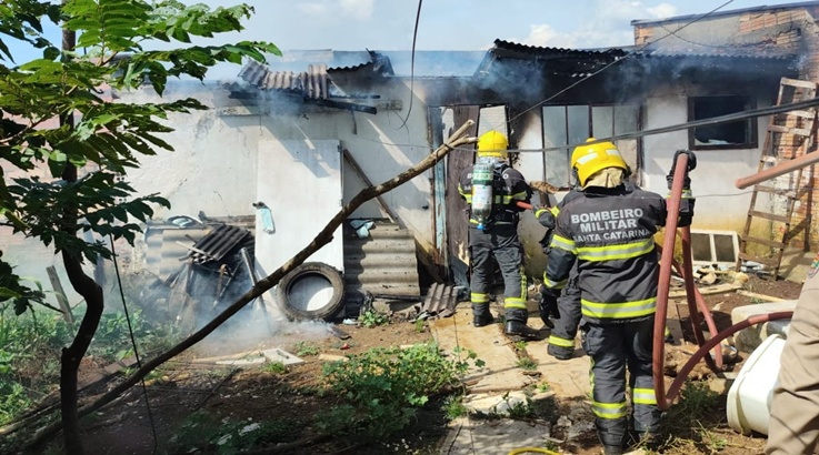 incêndio em residência na rua Benjamin Grigolo, bairro São Miguel, em Fraiburgo.
