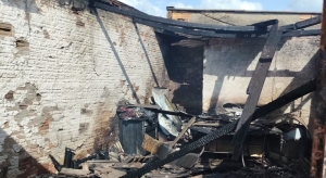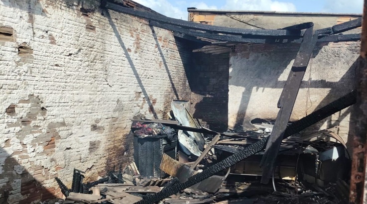 nos fundos do terreno, com toda edificação consumida pelas chamas e com telhado