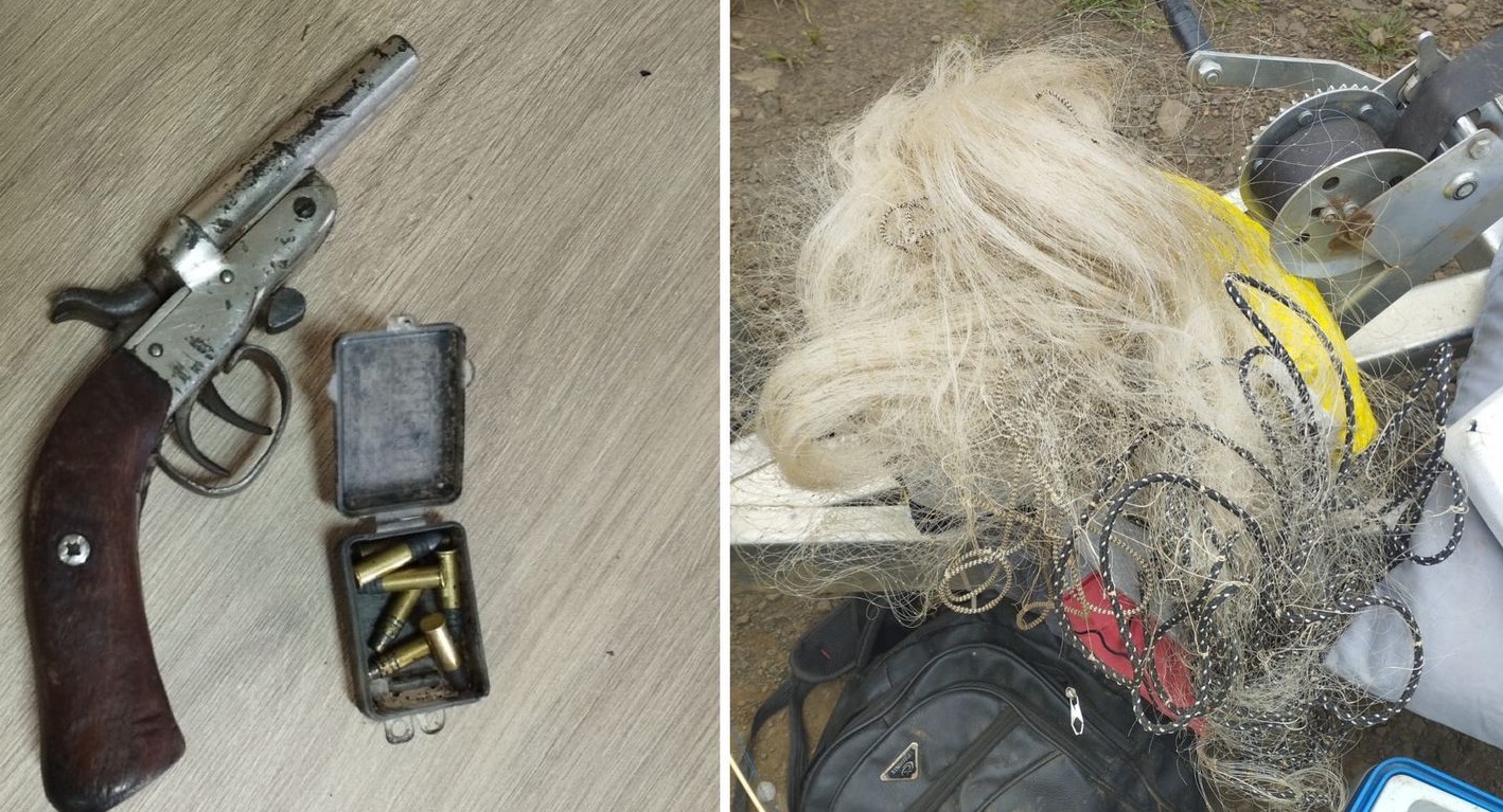 o local e apreenderam redes de pesca, peixes, um barco com motor, uma arma de