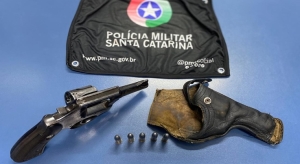 Em revista pessoal identificou-se um revólver calibre .38,