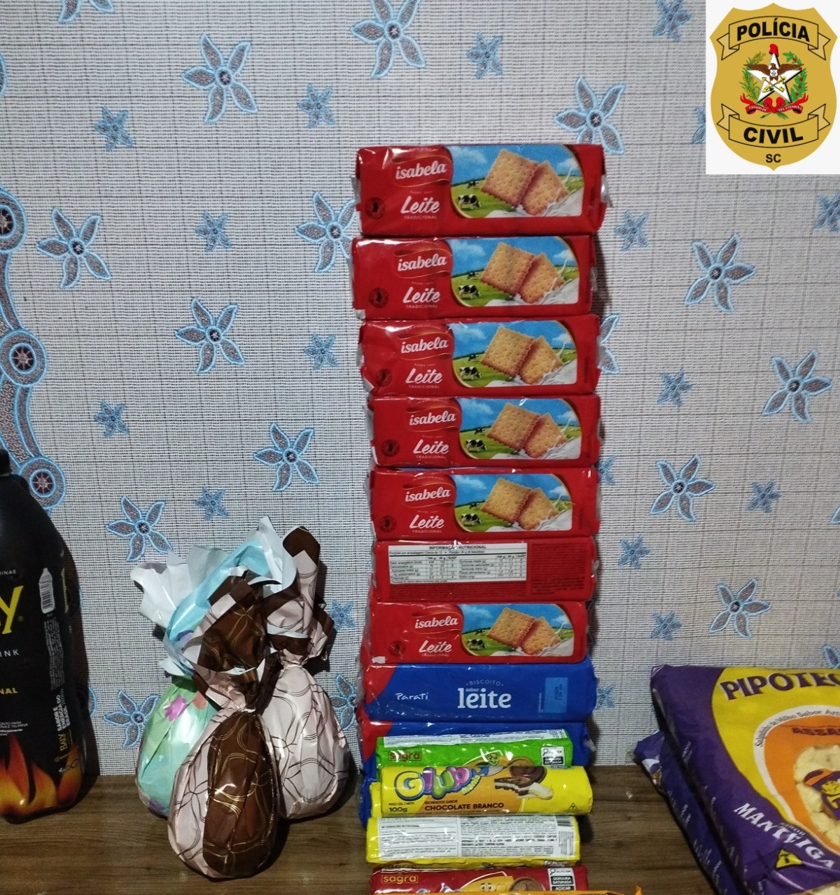 Páscoa, biscoitos, grande quantidade de alimentos não perecíveis, várias peças
