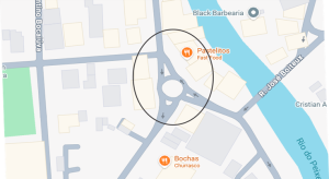 Fiesta, um Corsa e uma camionete que estava estacionada, próximo à rótula na
