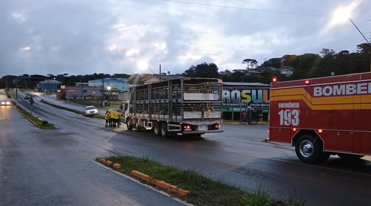 para atender a uma colisão entre um veículo e um caminhão na Rodovia SC-350, no